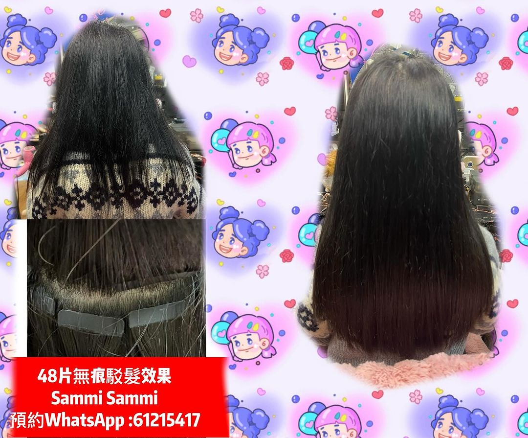 無痕駁髮正常係4cm片,Sammi有時亦會因應頭髮分佈同需要而將小部分改為細細片駁,如果客人特別要求全個頭都用細片的,每20片+$50 同預早説明,另外效果亦可能無咁自然